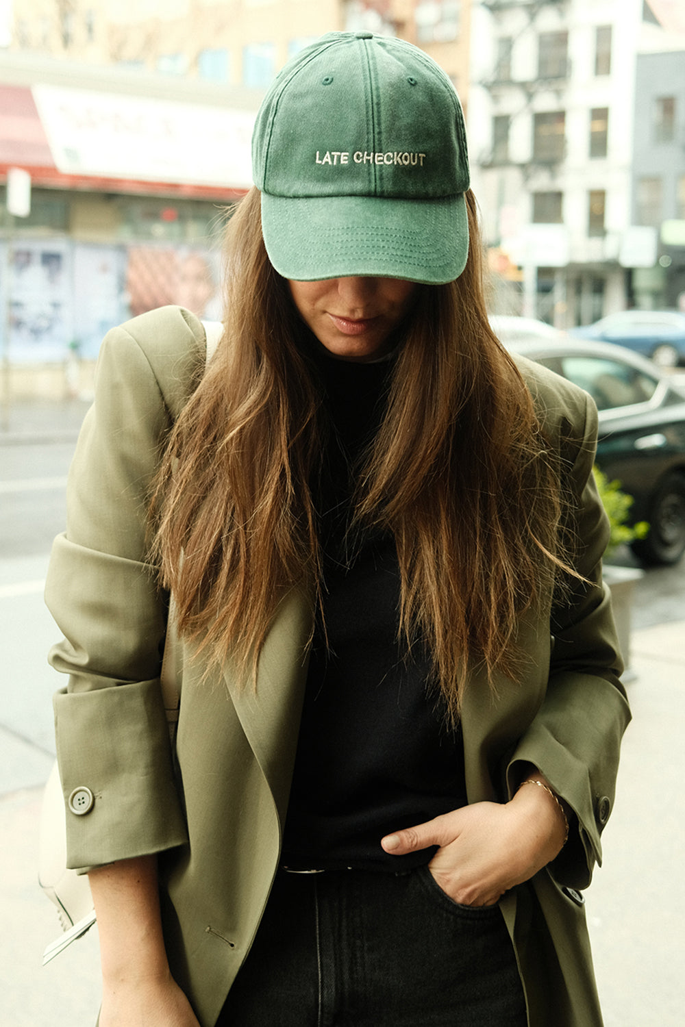 Kšiltovka je pro všechny, se kterými myšlenka jednoho dne dovolené navíc rezonuje. K barvám kolekce nás inspirovala orosená láhev s vodou, stojící na stole v malém francouzském bistru. A na jedné z našich dovolených vznikla i skica k výšivce, kdy jsme ji načrtly na ubrousek v tamním podniku.