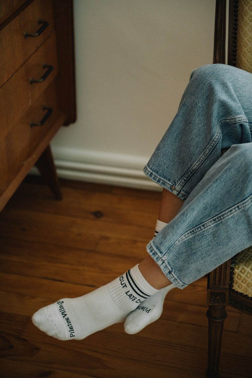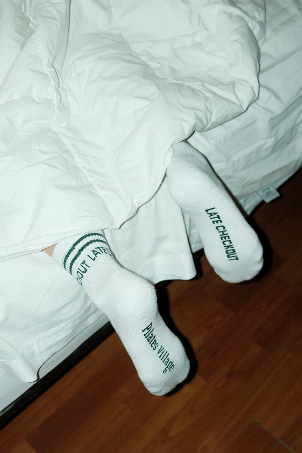 Vroubkování, zesílená šlapka pro ultimátní pohodlí, kvalitní bavlna a design kolekce LATE CHECKOUT – ponožky české výroby, které skvěle doplní každý outfit.
